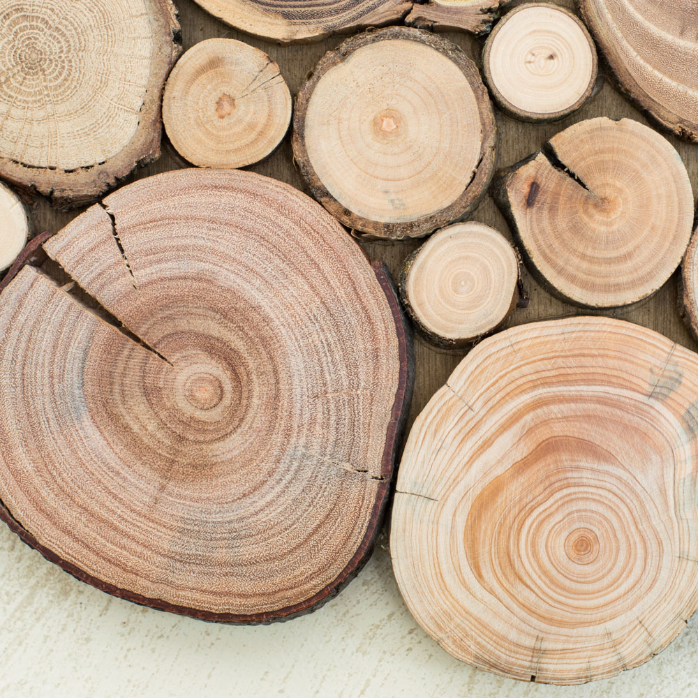 I cut the log slices and sand them one by one to provide a pleasant softness to the touch and discover their rings. Its colour is natural, I do not add dyes. Finally I apply nature wax to protect and highlight their beauty.