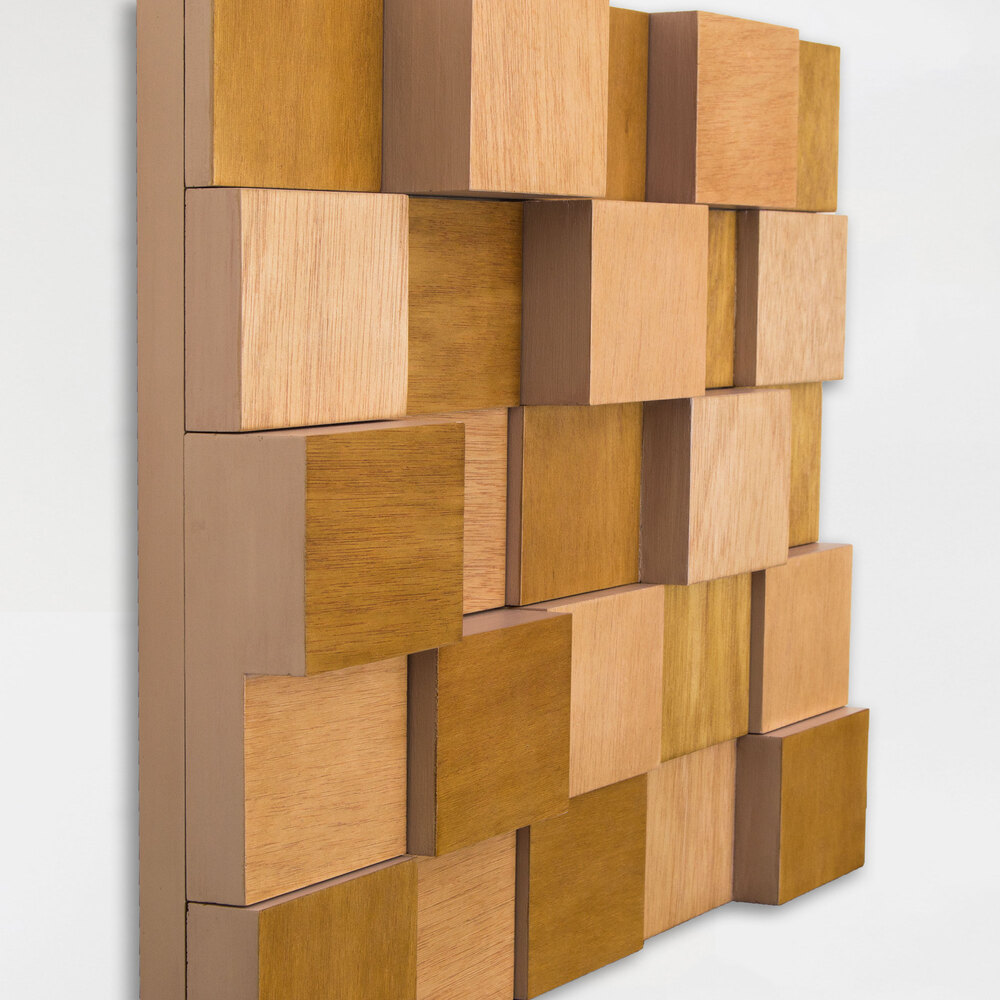 It’s made with wooden blocks and features an elegant and innovative design. This design makes it an ideal piece for decorating a professional office, a small room, or a modern entryway, for example.